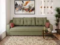 Габаритные размеры: 2330х870х880 (мм). Механизм трансформации: «Еврокнижка». Высота сидения: 440 (мм). Глубина сидения: 430 (мм). Размер спального места: 1960х1400 (мм). Наполнитель: Резиновая лента, листовой ППУ, геовойлок.