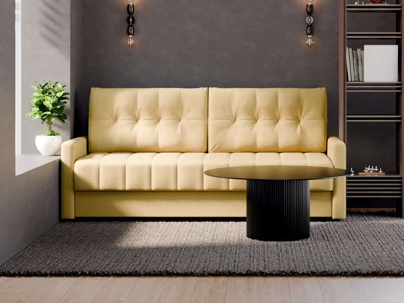 Габаритные размеры: 2160х1140х1010 (мм). Механизм трансформации: «Пантограф» Высота сидения: 500 (мм). Глубина сидения: 600 (мм). Размер спального места: 1950х1570 (мм). Наполнитель: НПБ, листовой ППУ, синтепон, геовойлок